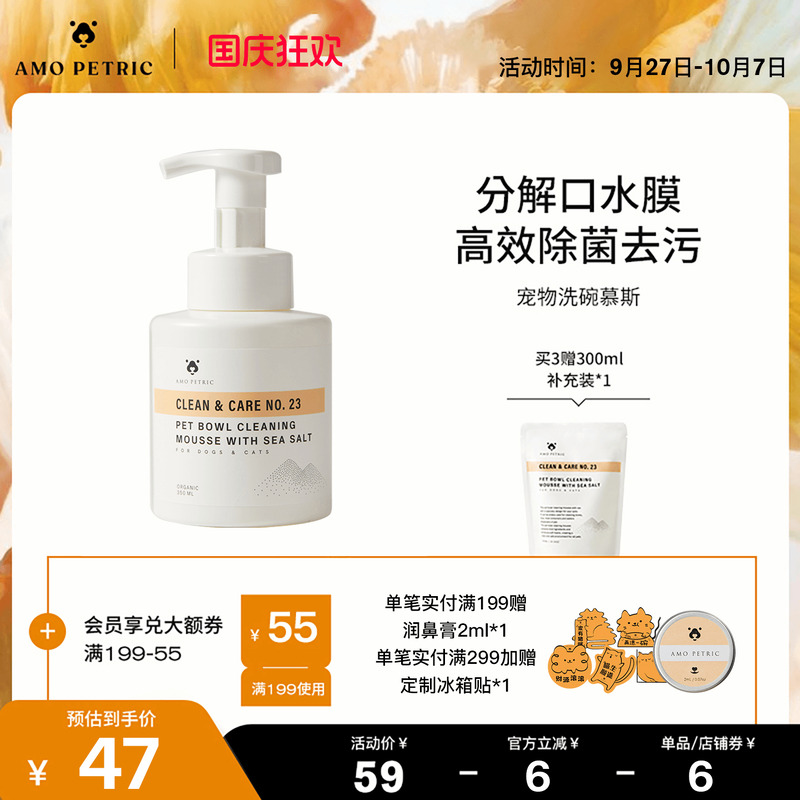 amopetric阿默海盐宠物洗碗慕斯餐具清洗液猫狗碗清洁剂除油污