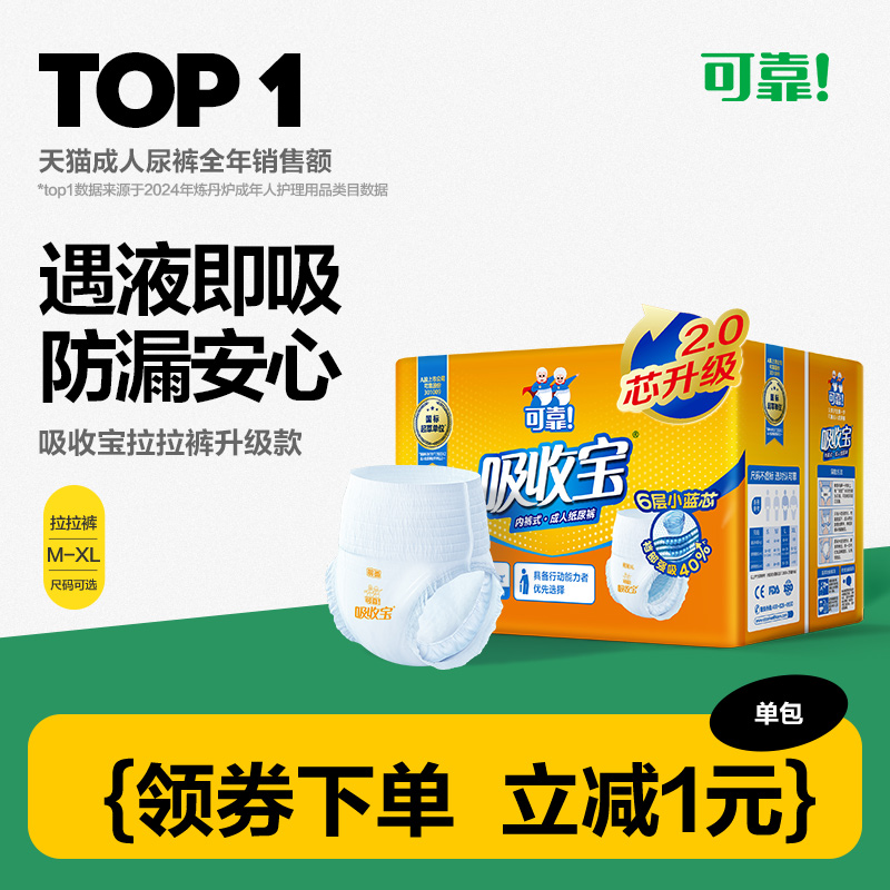 可靠吸收宝成人拉拉裤2.0内裤型纸尿裤老人用尿不湿男女通用单包