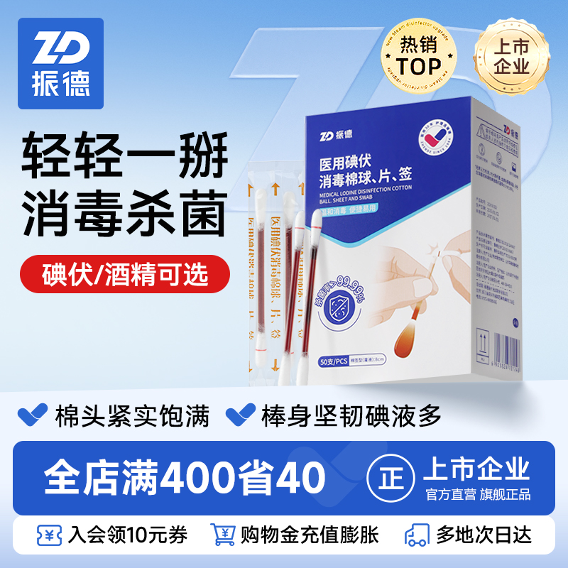 碘伏棉签医用一次性消毒棉棒新生婴儿宝宝碘酒棉球消毒液酒精试用