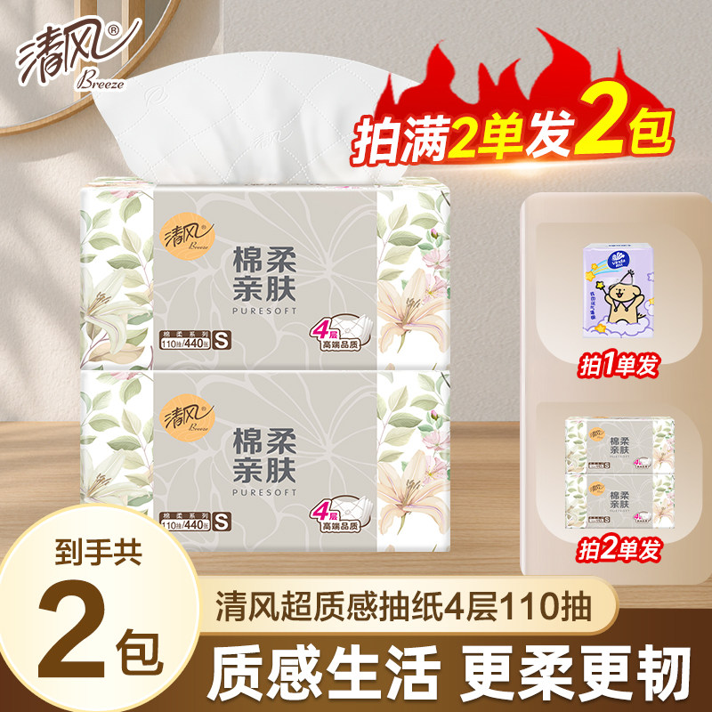 清风超质感抽纸110抽2元包邮家用抽取式实惠装餐巾纸家庭装面巾纸