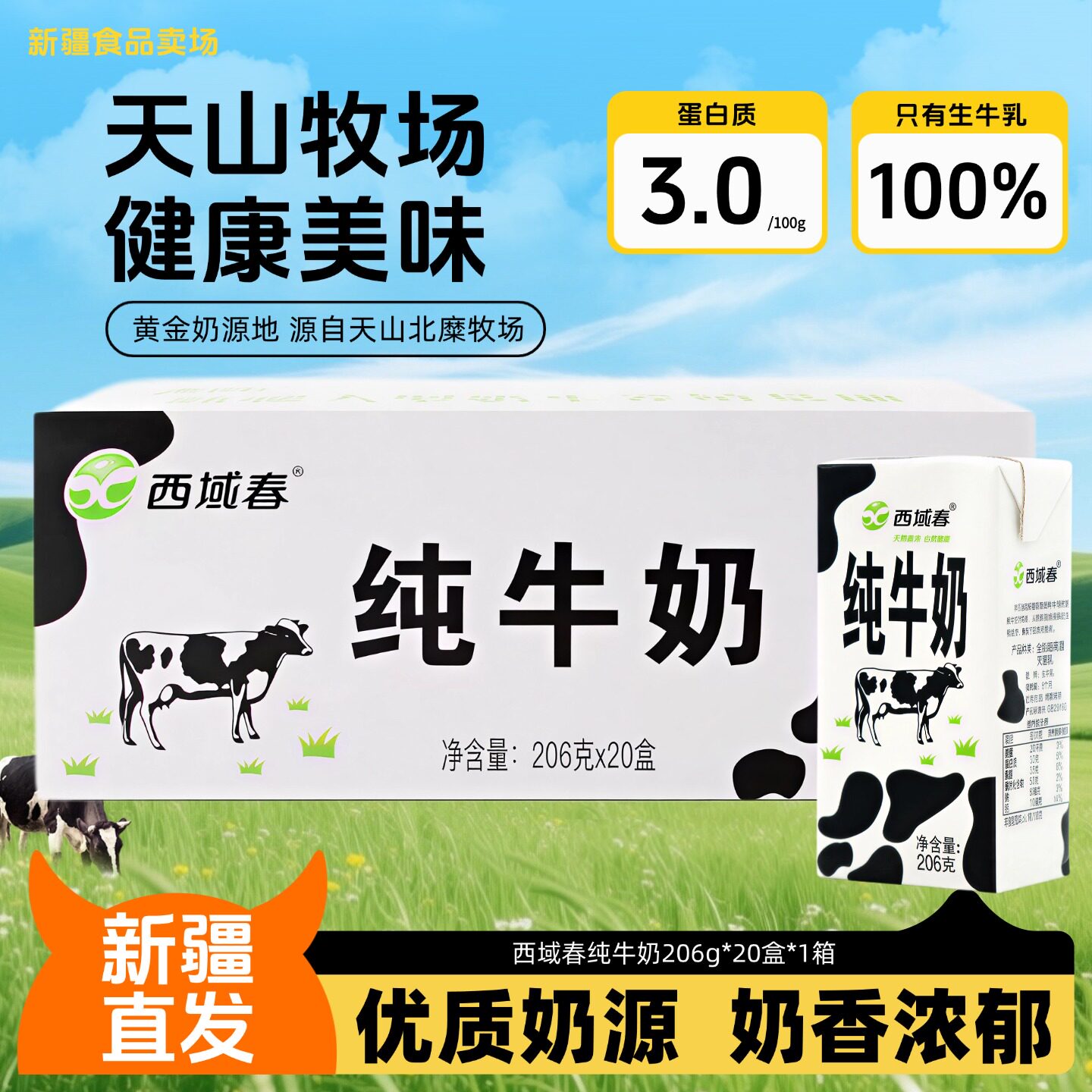 新疆西域春纯牛奶整箱206克*20盒成人儿童学生营养早餐牛奶