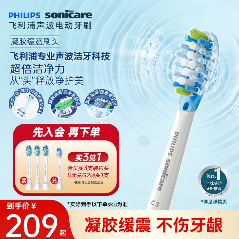 飞利浦电动牙刷头官方原装适配钻石3/7/9系刷柄清洁护敏亮白C3