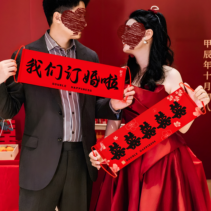 结婚横幅手拉旗拍照接亲堵门道具大全新娘订婚领证登记游戏用品