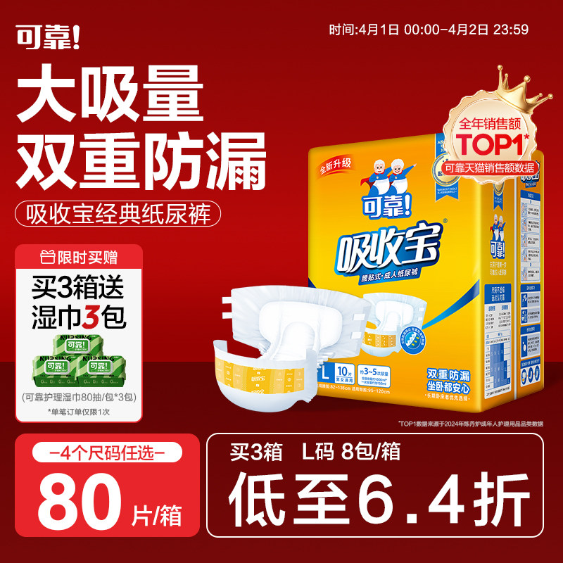 可靠吸收宝成人纸尿裤老人用尿不湿箱装80片男女孕产妇纸尿垫尿片