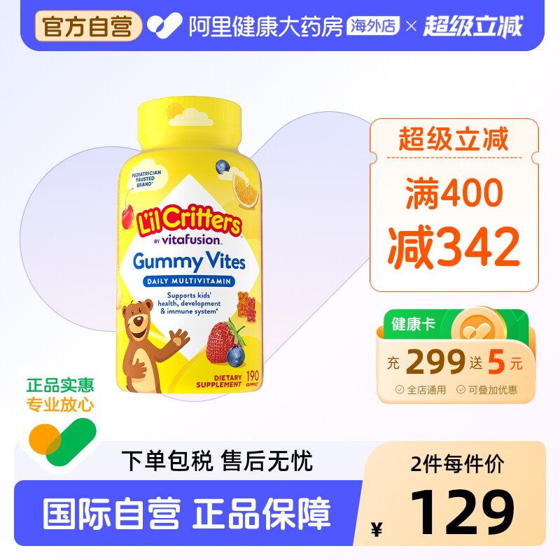 美国丽贵宝宝儿童多种复合维生素富含13种营养素小熊糖190粒