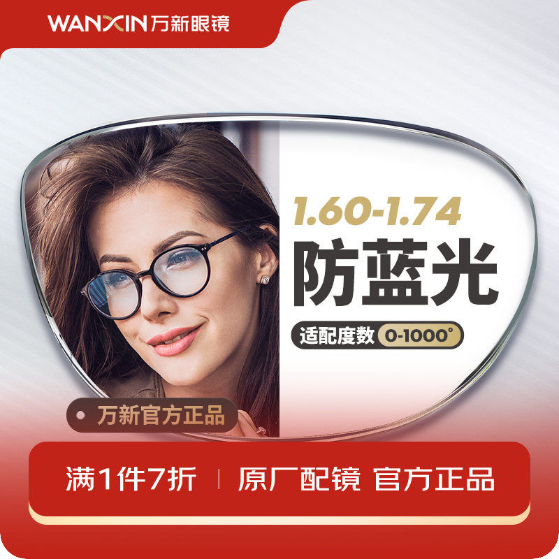 万新镜片1.74超薄非球面防蓝光防辐射高度数近视镜片配眼镜旗舰店