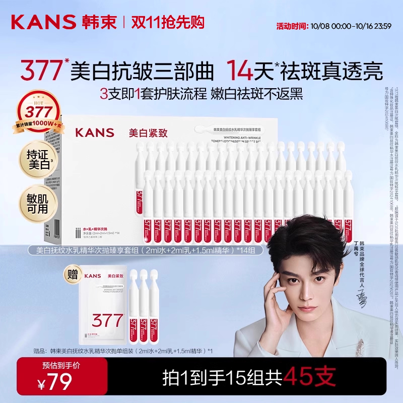 韩束377次抛水乳精华3连包美白淡斑透亮补水保湿官方旗舰店正品