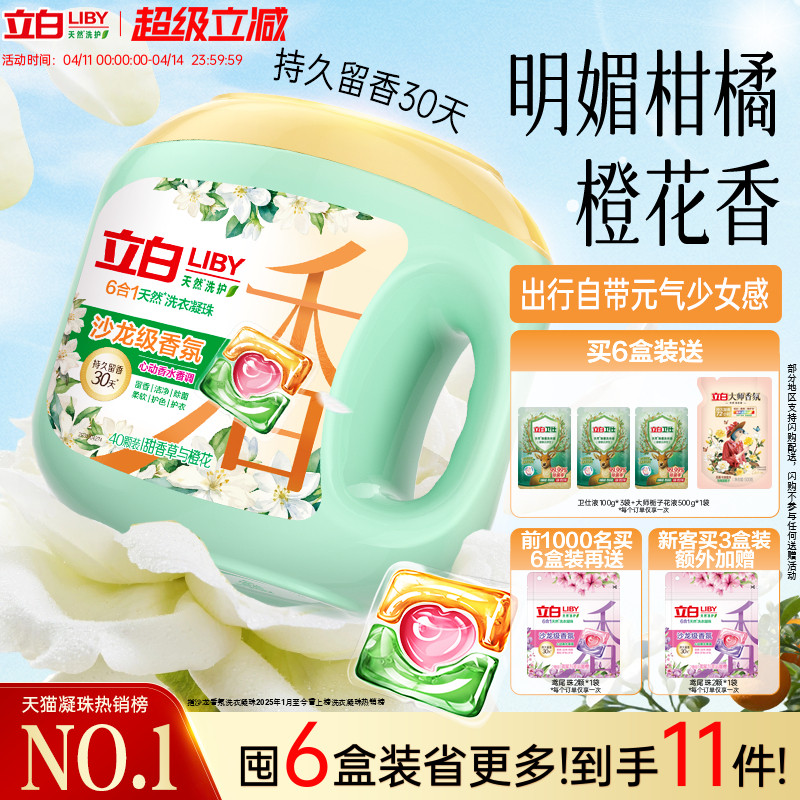 立白沙龙香氛洗衣凝珠香水留香30天 六合一除菌除螨柔顺护色护衣
