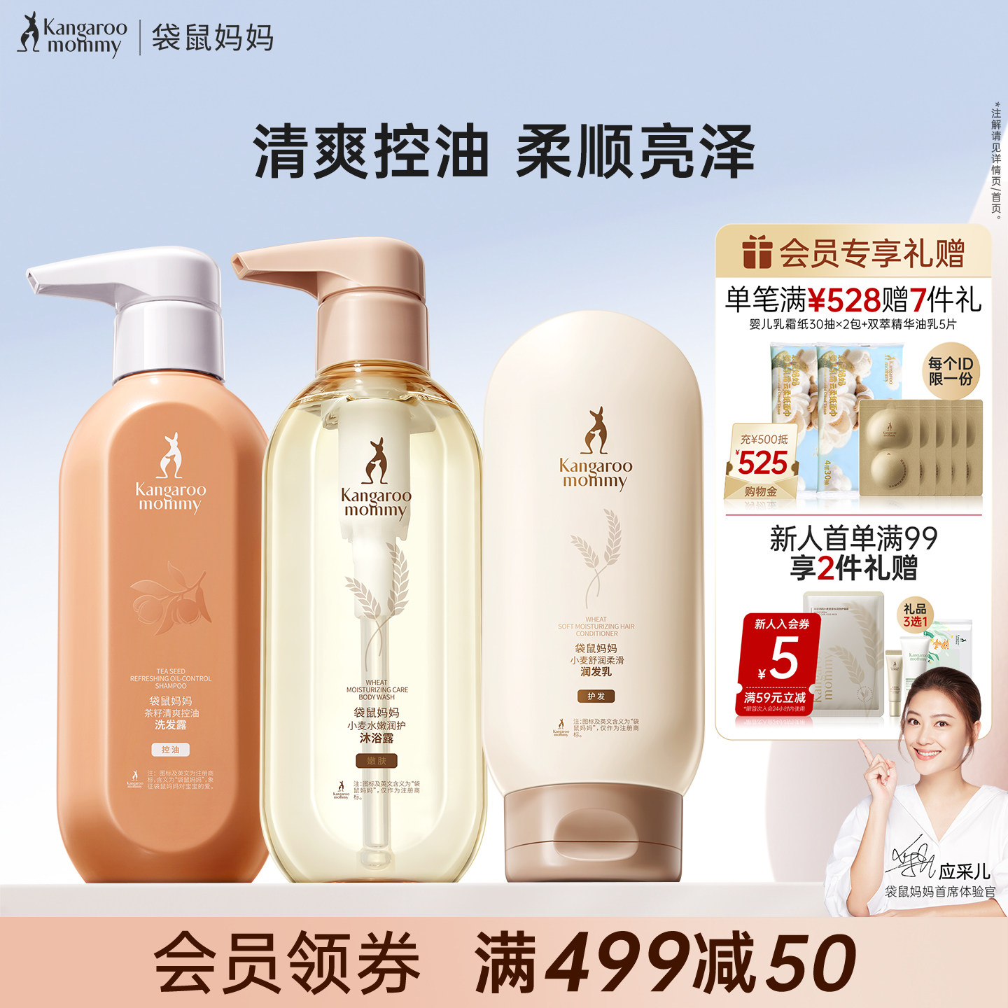 袋鼠妈妈茶籽洗护套装可用沐浴露洗发水控油去屑专用官方旗舰店