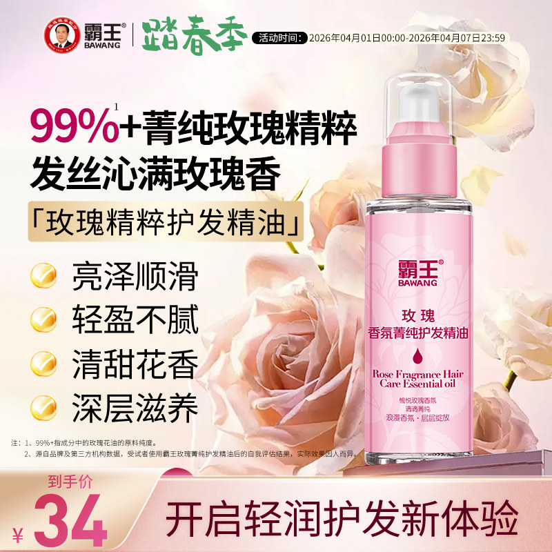 霸王玫瑰护发精油头发护理油香氛顺滑发油女防毛躁滋养柔顺精华油