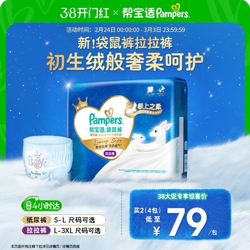 【全新加量装】帮宝适袋鼠裤纸尿裤拉拉裤S-3XL超薄防尿不湿