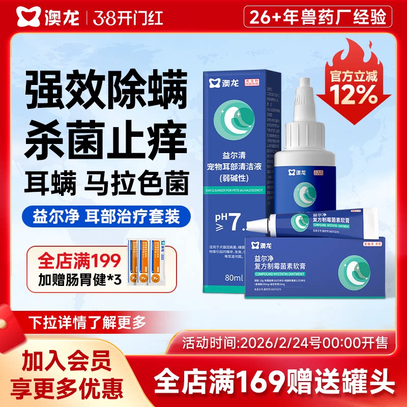 澳龙益尔净狗猫通用除耳螨马拉色菌消炎宠物洗耳液软膏耳药益耳净