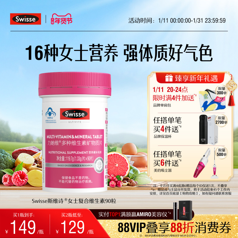 Swisse斯维诗女士蓝帽复合维生素b族维d3烟酰胺b2叶酸e免疫保健品