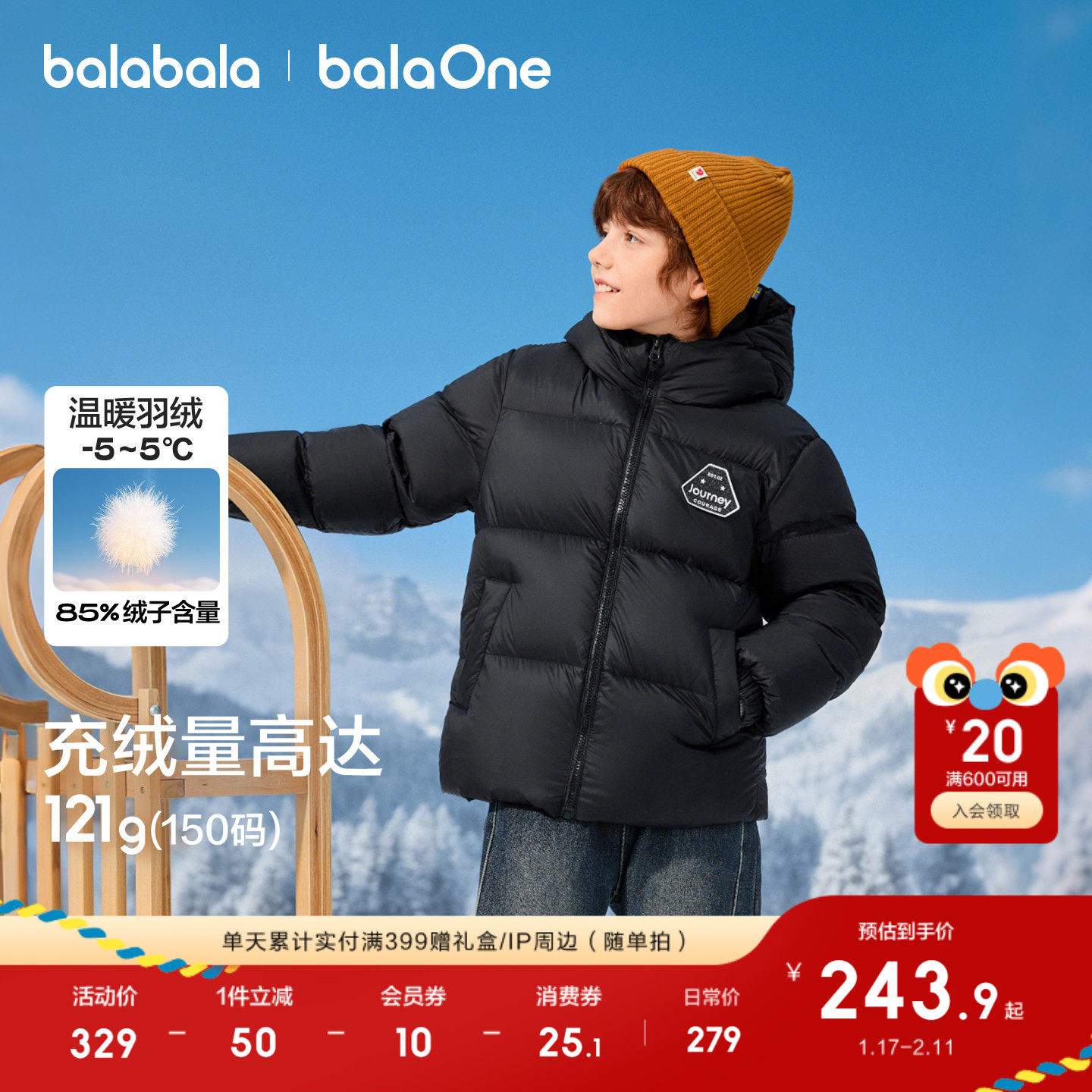 巴拉巴拉童装儿童羽绒服男童女童2025年冬装保暖三防加厚舒适上衣