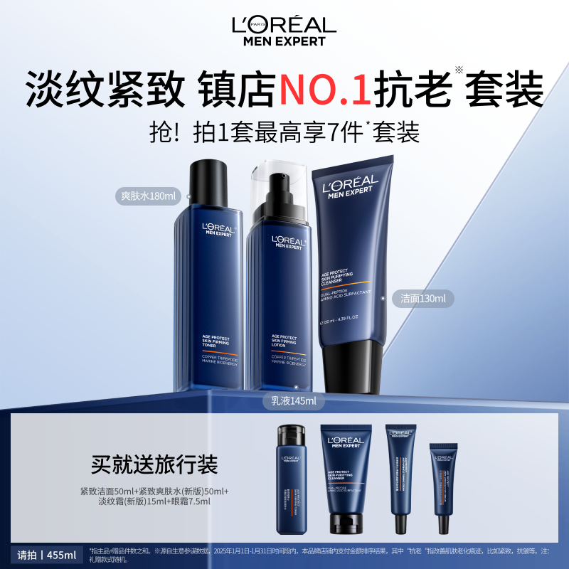欧莱雅男士淡纹套装紧致抗皱抗老保湿控油洗面奶水乳护肤品礼物