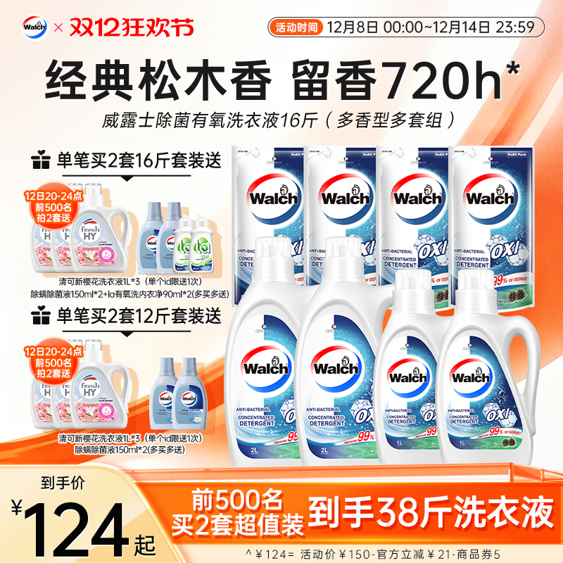 威露士除菌有氧洗衣液原味/松木除螨留香机手洗12斤/16斤