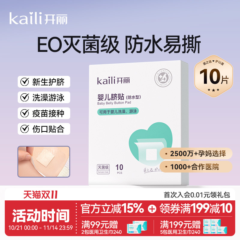 开丽婴儿肚脐贴新生儿透气护脐贴宝宝洗澡游泳防水脐带贴30片