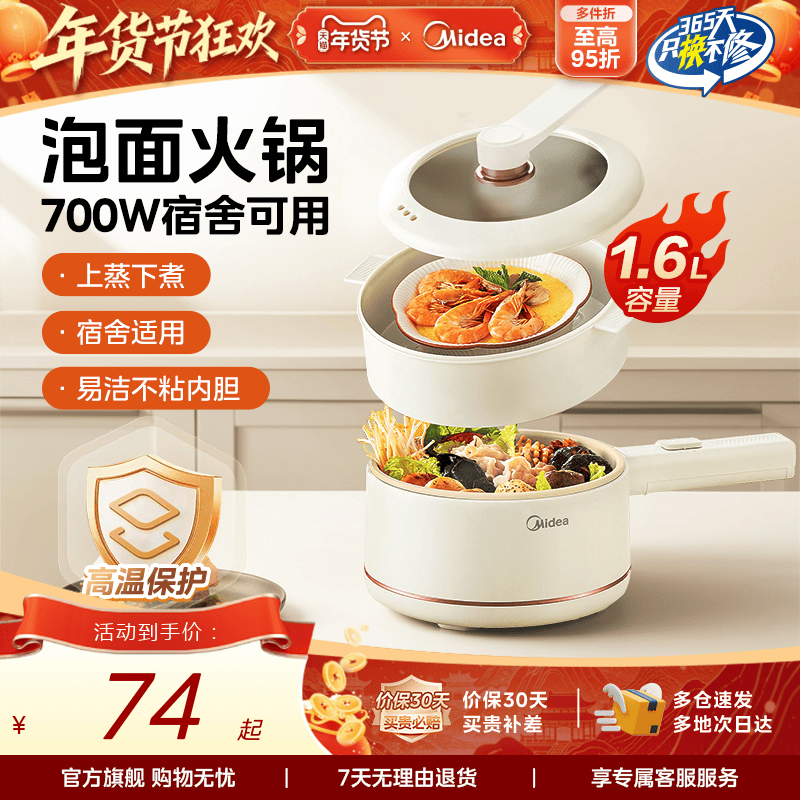 七彩叮当电煮锅不锈钢含钛多功能家用蒸煮锅一体电炒火锅小型电锅