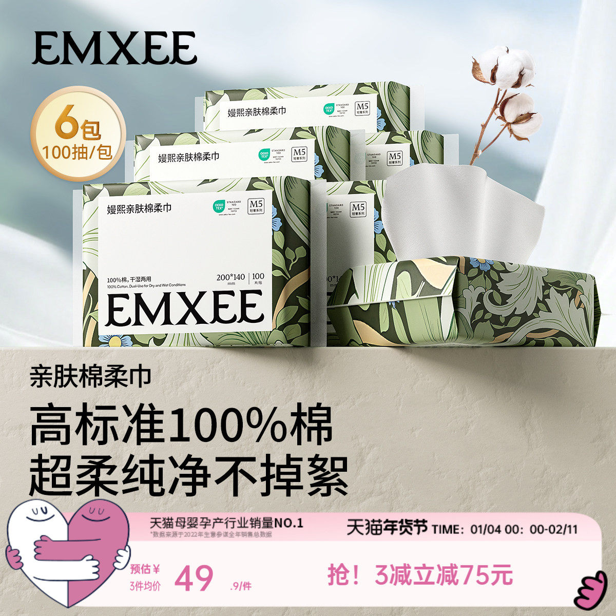 聪妈婴儿纸巾抽纸120张柔纸巾新生宝宝专用乳霜云柔巾保湿牛乳纸