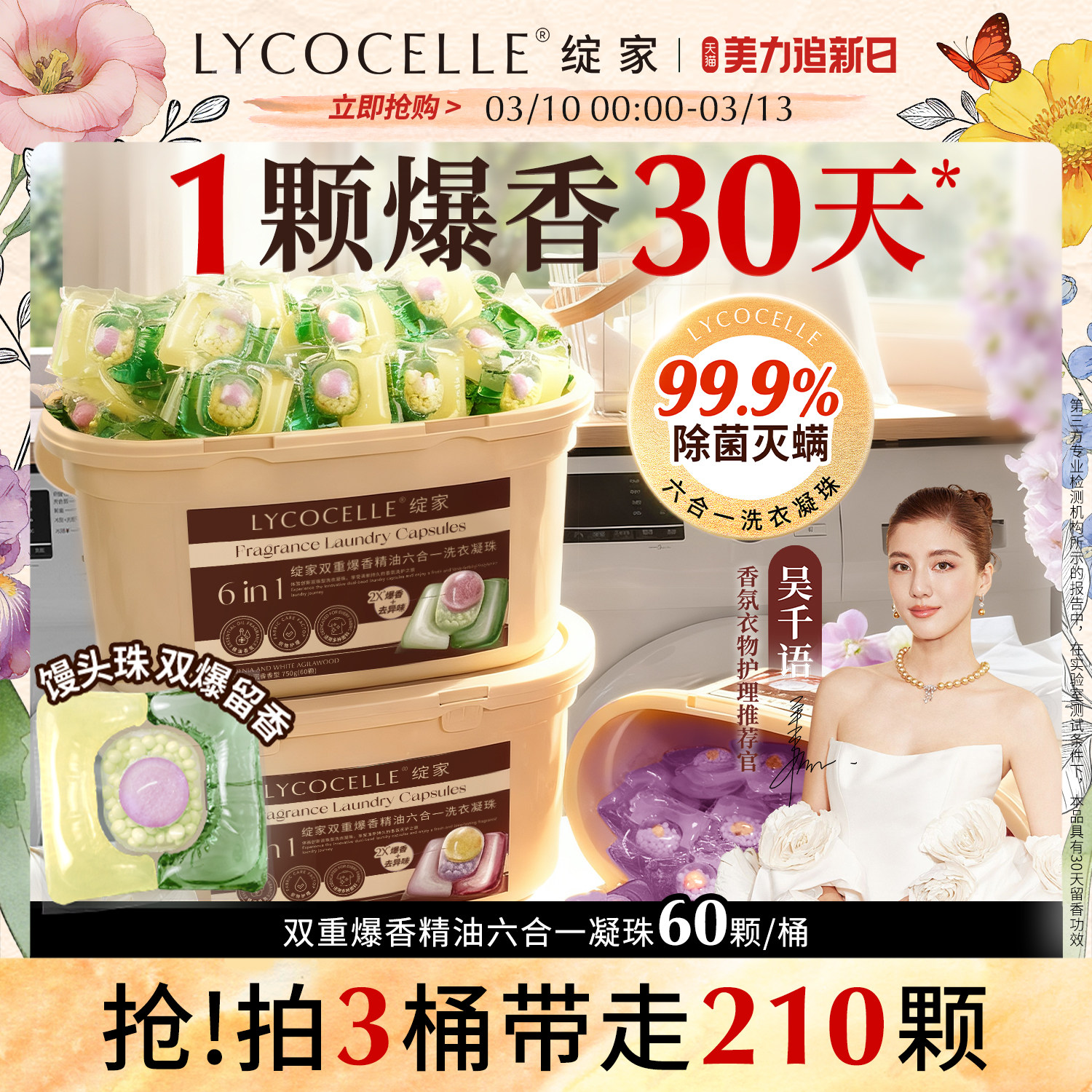 绽家蓝桉叶精油双重爆香四腔洗衣凝珠持久留香除菌灭螨护色六合一