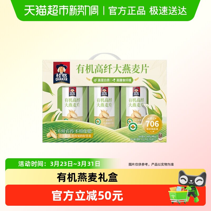 桂格有机高纤大燕麦片礼盒1050g高蛋白节庆送礼营养补充膳食纤维