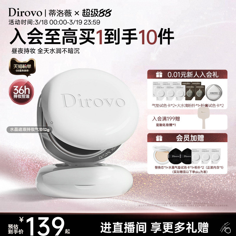 蒂洛薇dirovo白水晶气垫BB遮瑕粉底液控油持妆36h保湿不卡粉提亮