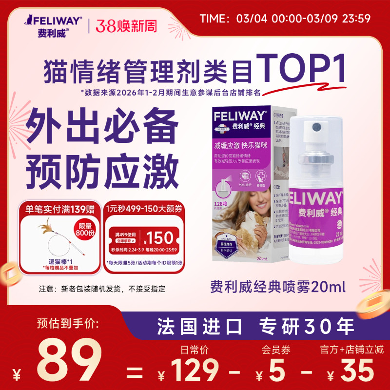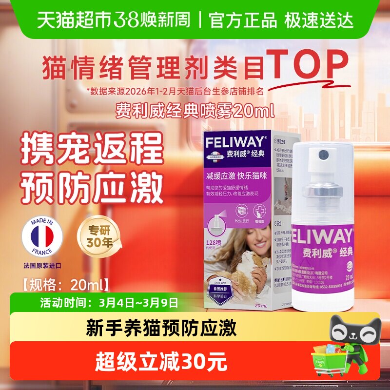 费利威FELIWAY经典喷雾费洛蒙预防猫乱尿安抚猫咪情绪20ml