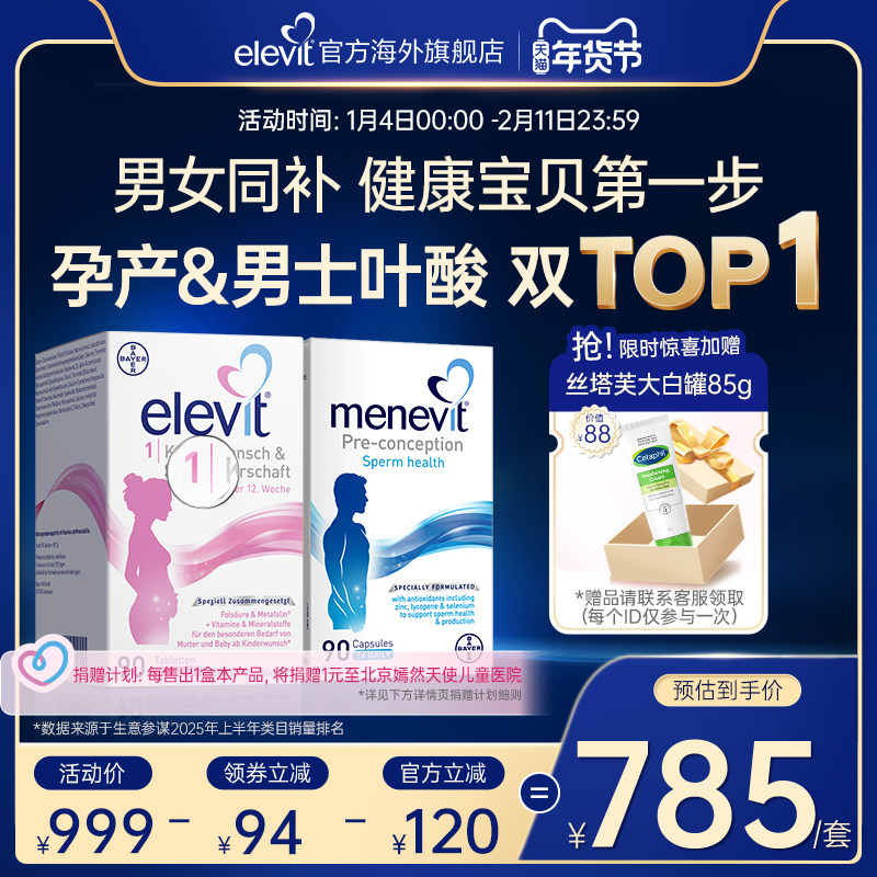 【旗舰店】Elevit爱乐维1段活性叶酸孕妇专用+男士备孕复合维生素