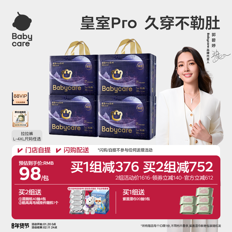 奇莫皇家至柔拉拉裤L-4XL码2包轻薄透气婴儿尿不湿大吸量正品春夏