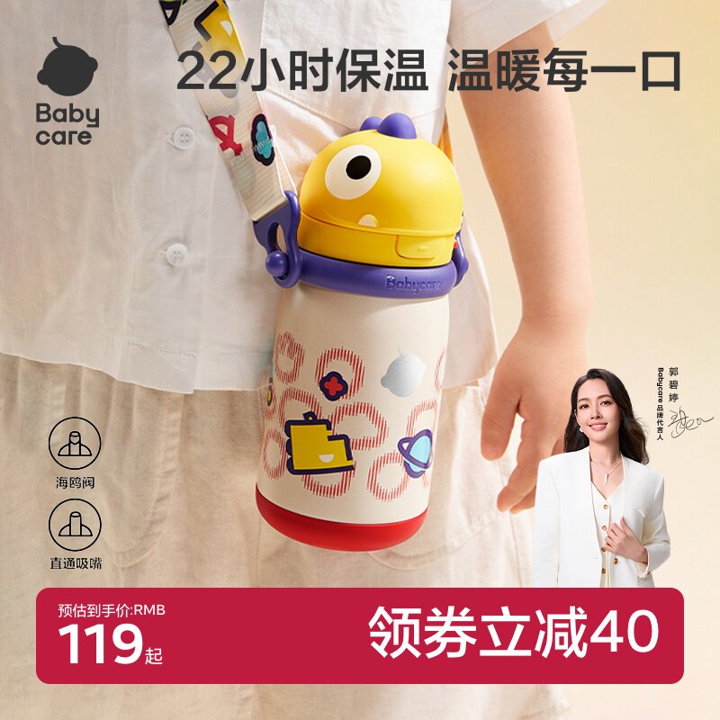 babycare恐龙儿童保温杯婴幼儿园宝宝6个月以上1到3岁吸管水杯