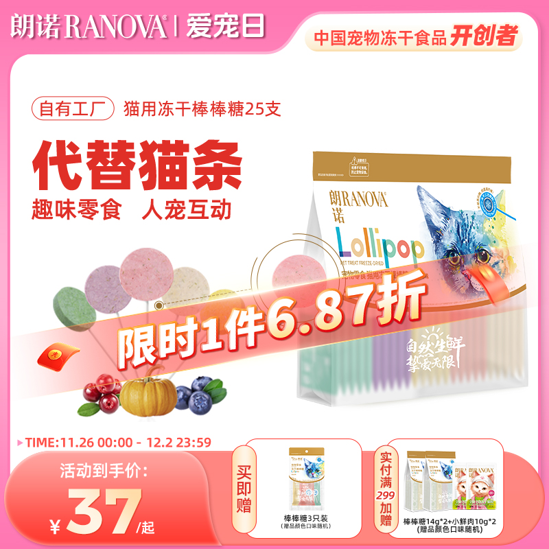 朗诺猫咪零食鸡肉冻干棒棒糖宠物营养鸡肉水果多种口味磨牙棒25支
