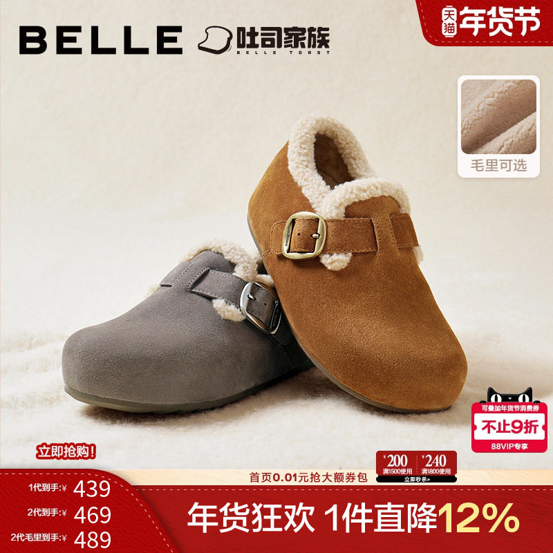 周雨彤同款百丽厚底全麦吐司2代毛毛勃肯棉鞋冬季加绒雪地靴女预
