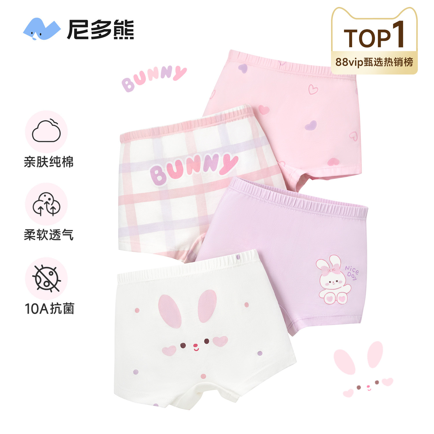 尼多熊女童内裤儿童纯棉平角短裤女宝宝四角内裤中大童女孩不夹PP