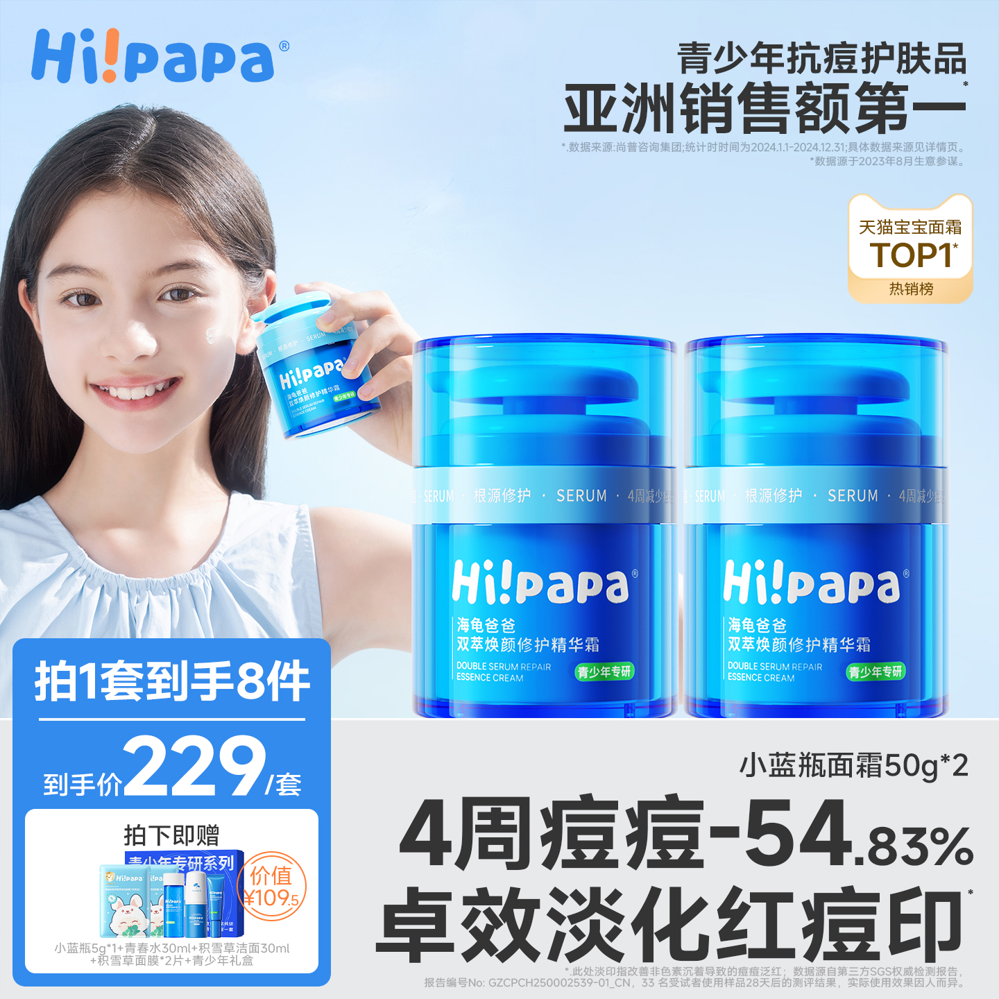 海龟爸爸小蓝瓶儿童面霜男女童滋润护肤品青少年保湿霜祛痘精华霜