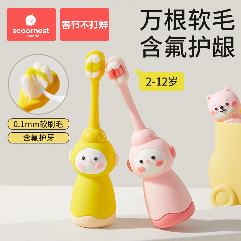 科巢儿童软毛牙刷宝宝0-1-3到6一12岁半以上牙膏婴儿婴幼儿乳牙刷