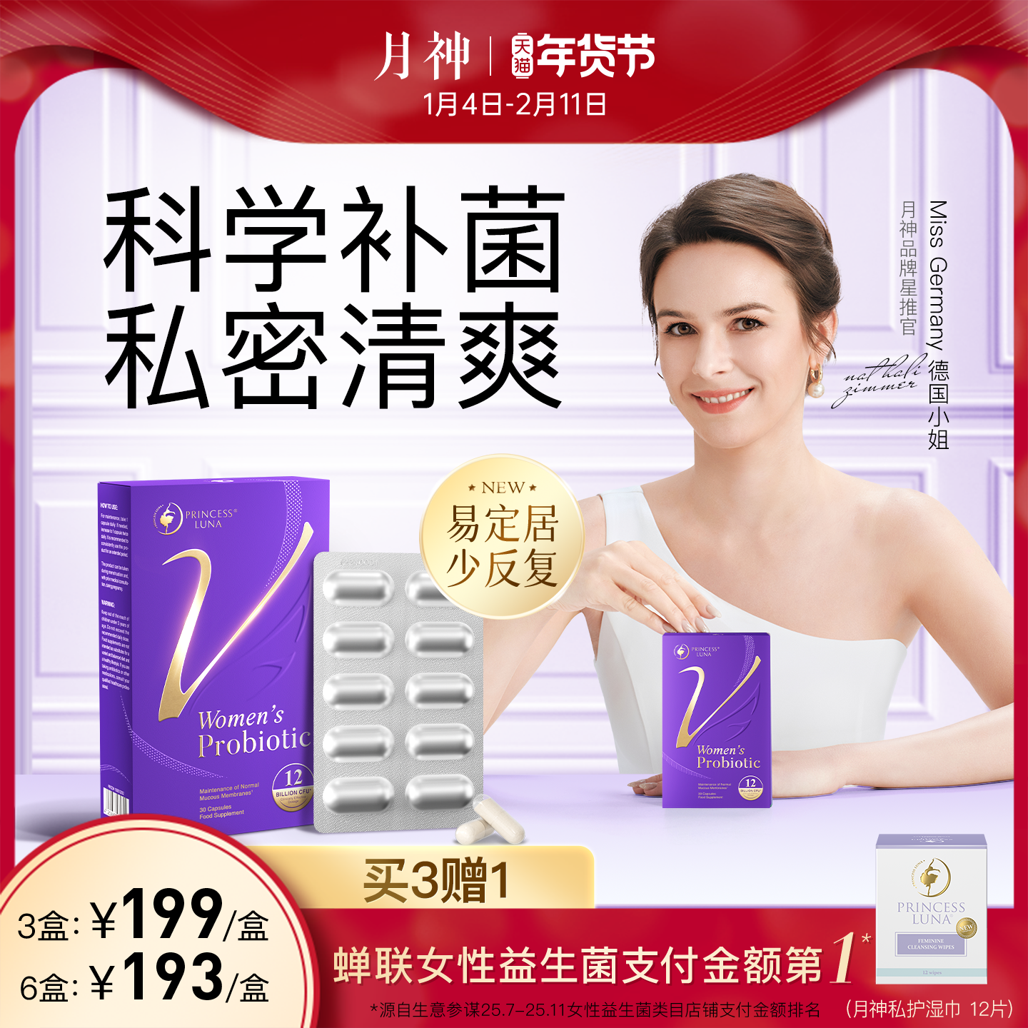 月神小花园女性益生菌护理口服进口乳酸杆菌30粒
