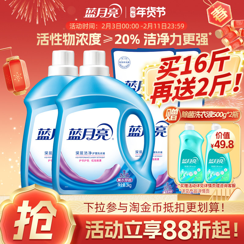 蓝月亮洗衣液3kg 16斤家用薰衣草持久留香正品整箱批家用套装机洗