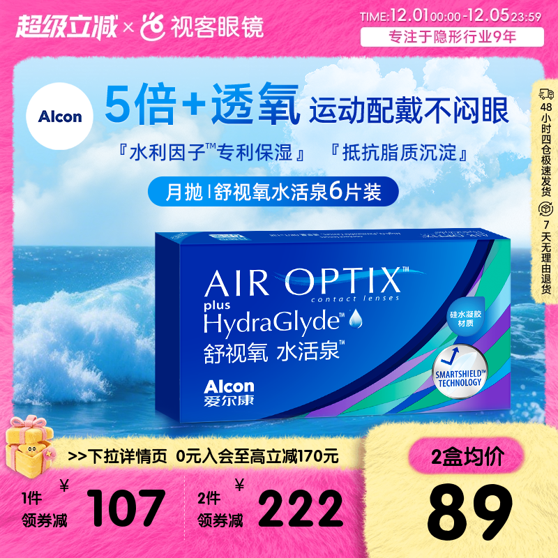 爱尔康视康水活泉月抛6片装硅水凝胶隐形近视眼镜正品