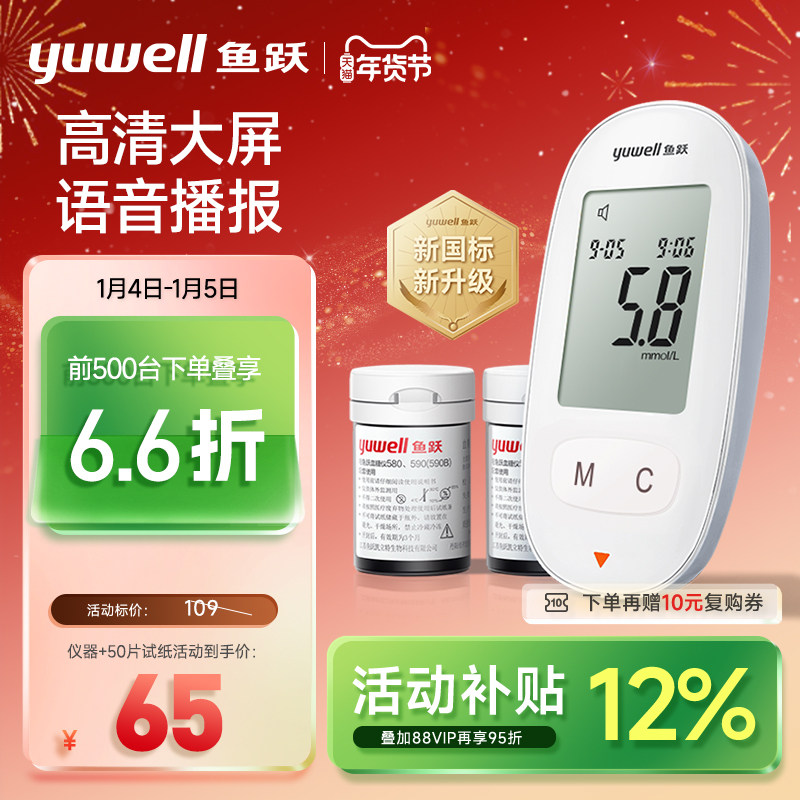 鱼跃血糖仪580家用测试高精准测血糖仪器测量试纸老人官方旗舰店