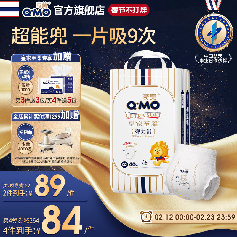 奇莫皇家至柔拉拉裤袋装XXL码40片婴儿尿不湿春节发货