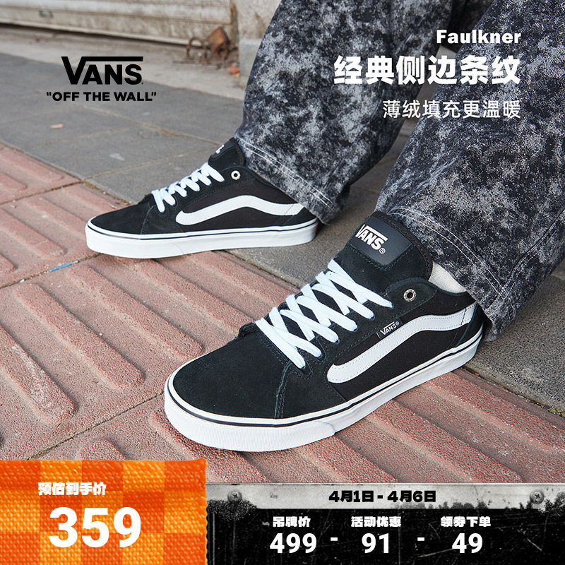 Vans范斯官方 Faulkner粉彩风酷感黑美式经典薄绒男鞋板鞋