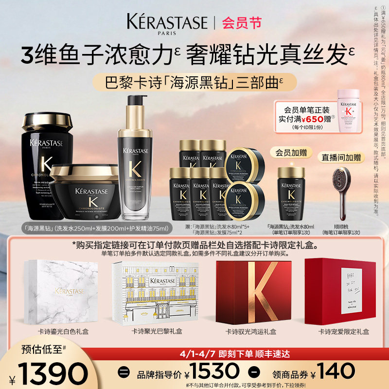 【官方正品】卡诗海源黑钻洗发水护发精油发膜官方礼盒套装