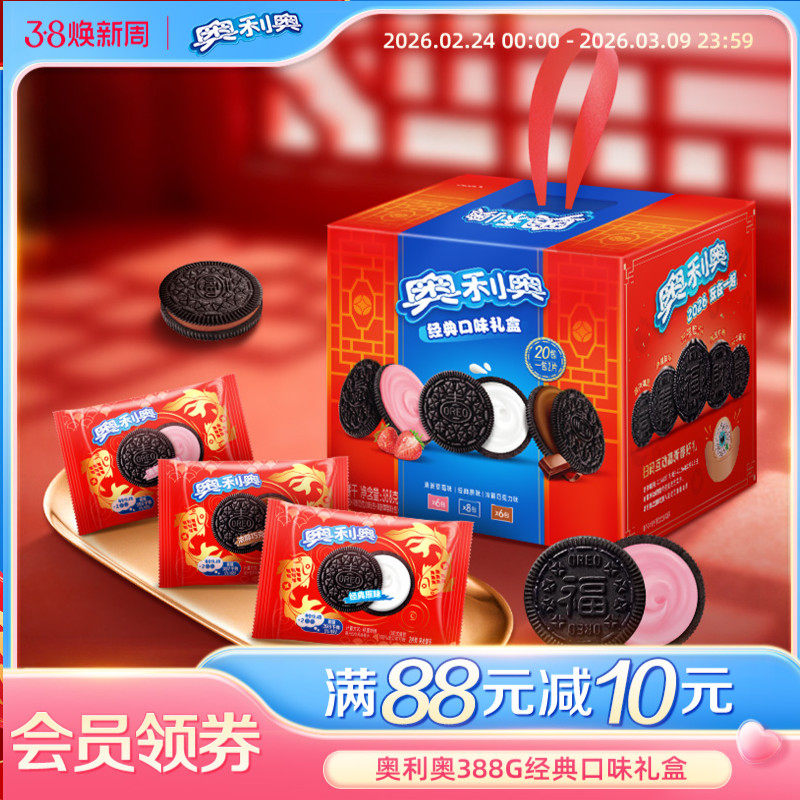 奥利奥388g缤纷口味礼盒夹心饼干原味巧克力草莓味
