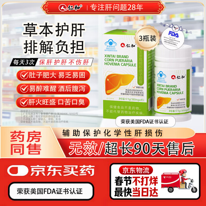 仁和护肝胶囊3瓶装 护肝片新态牌玉米葛根枳椇子胶囊养肝护肝
