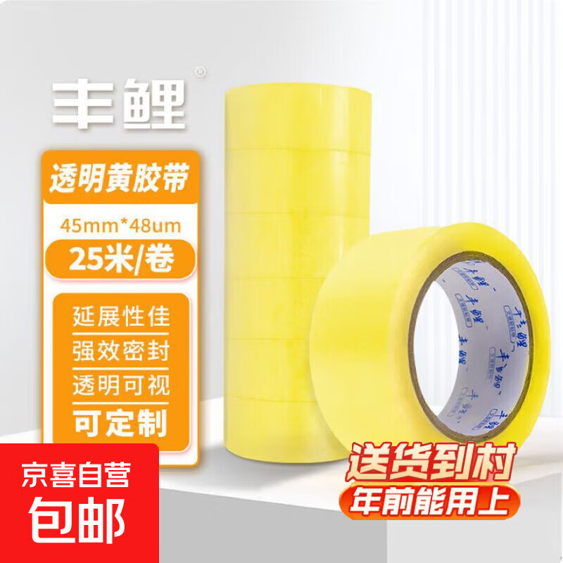 【断货王】高粘度加厚透明胶带快递打包胶带封口胶布封箱大卷胶带 透明黄胶带40mm*25米 1卷