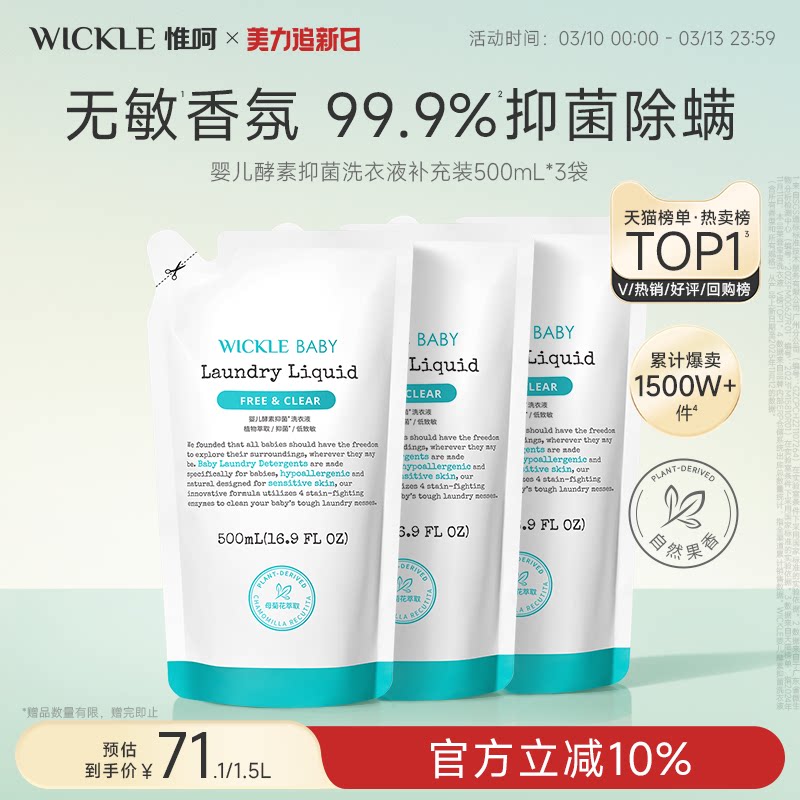 wickle婴儿酵素洗衣液儿童新生宝宝专用抑菌组合香型3袋装
