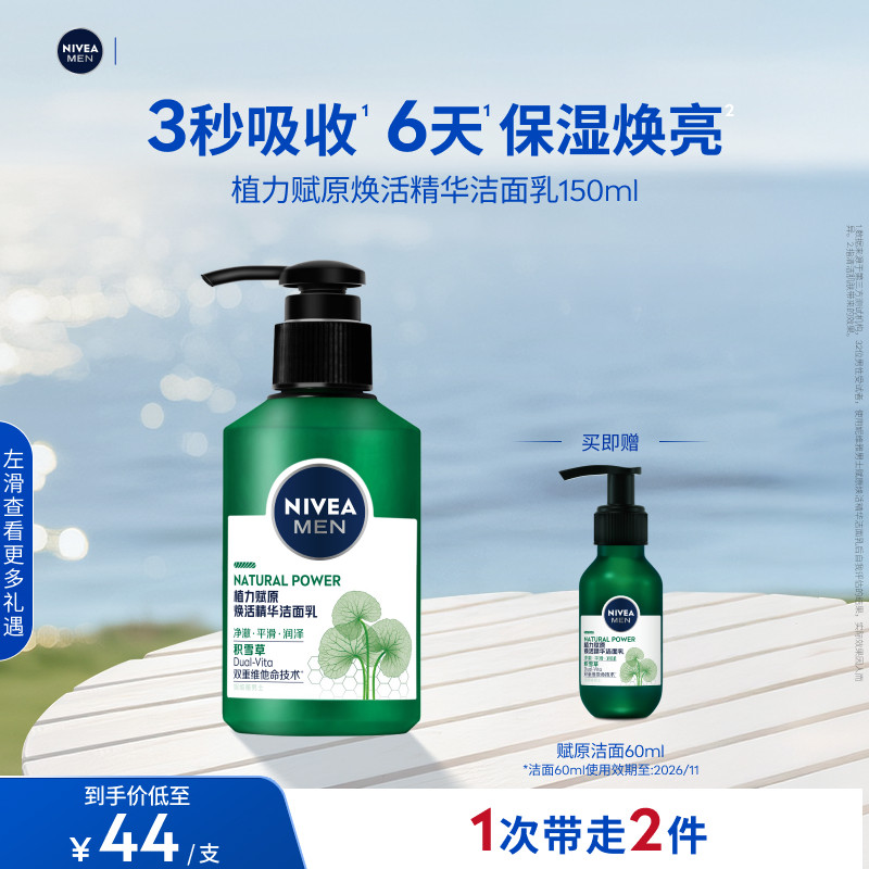 妮维雅男士专用积雪草洗面奶氨基酸表活深层清洁舒缓