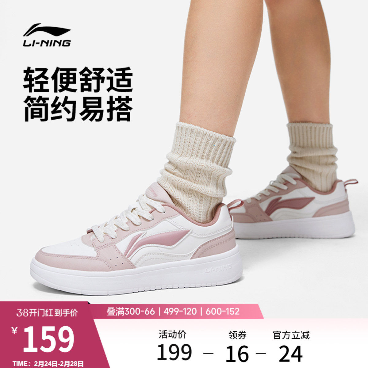 李宁元宝丨 板鞋女增高休闲鞋经典舒适百搭小白鞋新款增高运动鞋