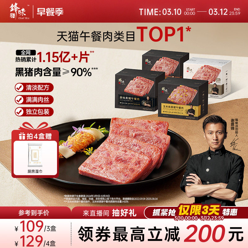 锋味派官方黑猪午餐肉罐头三明治专用火腿午餐肉独立包装儿童早餐