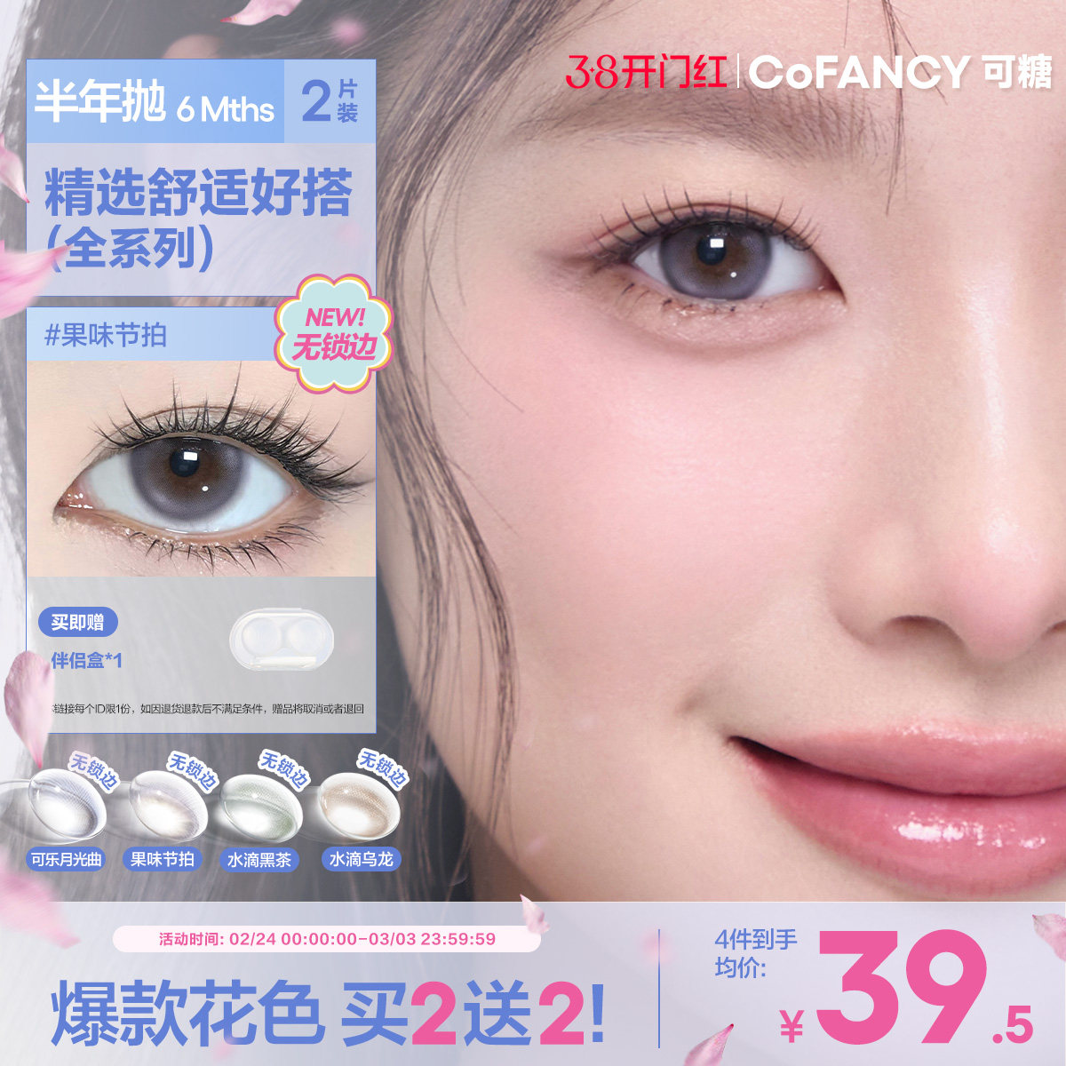 COFANCY可糖果味节拍珍宝珠半年抛小大直径美瞳冰滴黑茶半年抛2片